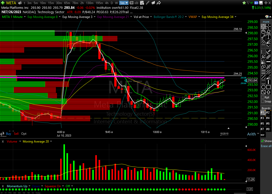 Meta Platforms Inc, 1 Minute, 14 indicators, 3 panes, 16 drawings